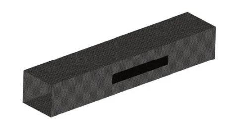 為了避免系統回流的影響,建立一個長×寬×高為50 mm×10 mm×10 mm的流場模型,采用結構化網格,如圖2所示。通過fluent的Eulerian模型、層流模型、Carreau黏度模型、壓力求解器,對PS/POE液液兩相流進行仿真分析。由于實驗時間較長,采用瞬態求解法,忽略重力、浮力、密度差、加熱不均帶來的影響。入口設置為速度邊界條件,出口邊界為壓力出口,流場上下前后4個面為周期邊界條件。為了確保仿真過程的準確性和經濟性,以及獲得兩相流真實的分布情況,首先對網格無關性進行研究。考慮3種數量(150×104、190×104、230×104個)的網格進行研究。當網格數量太少時,無法細致描述液滴表面處的形態(橢球型)。通過數值模擬,分析了液滴回縮時間t。從表2中可以看出,網格數量對于計算結果的影響很小,同時考慮到數值模擬計算的時間和經濟性,采用190×104個網格。收斂時間的判斷依據殘差圖以及液滴形態兩個標準,計算每一步的殘差值設定為10-3,同時設置主視、俯視、左視3個監測面(均位于球心處)用來觀察液滴形態。形態為球形時,計算收斂。