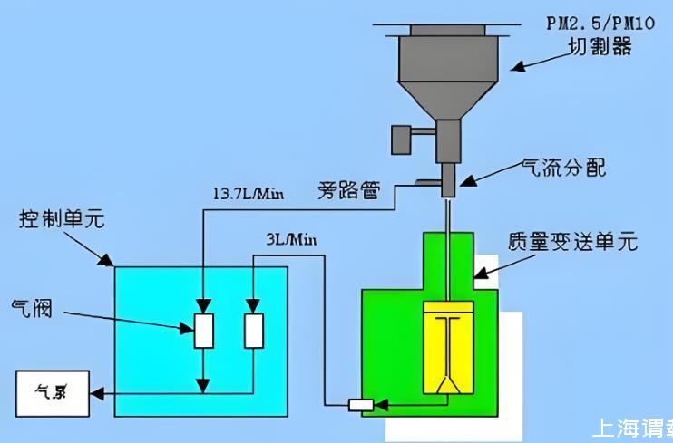 測量原理是基于錐形元件振蕩微量天平原理,核心部件為錐形元件振蕩器。錐形元件振蕩器在其自然頻率下振蕩,振蕩頻率由振蕩器件的物理特性、參加振蕩的濾膜質量和沉積在濾膜上的顆粒物質量決定。儀器通過采樣泵和流量計,使環境空氣以一恒定的流量通過采樣濾膜,顆粒物則沉積在濾膜上。測量出一定間隔時間前、后的2個振蕩頻率,就能計算出在這一段時間里收集在濾膜上顆粒物的質量,再除以流過濾膜的空氣的總體積,得到這段時間內空氣中顆粒物的平均濃度。