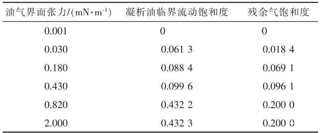 為了準(zhǔn)確地表征近井地帶凝析油逐漸聚集、反凝析加劇的特征,本文從界面張力對凝析油分布的影響機(jī)理出發(fā),分析了界面張力對凝析油氣相滲及臨界流動(dòng)飽和度的影響,建立了基于界面張力影響的臨界流動(dòng)飽和度模型,最后將界面張力對凝析油臨界流動(dòng)飽和度的影響表征到數(shù)值模擬中,模擬了更加真實(shí)的凝析氣藏凝析油聚集特征。