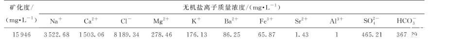 表1蘇里格氣田采出水礦化度及其無機(jī)鹽離子濃度