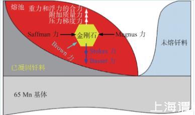 液態釬料的橫向速度使金剛石顆粒兩邊的相對速度不同,使金剛石顆粒發生旋轉,并帶動周圍流體流動,存在Magnus力FM為