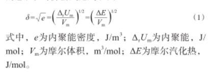式中,e為內聚能密度,J/m3;ΔrUm為內聚能,J/mol;Vm為摩爾體積,m3/mol;ΔE為摩爾汽化熱,J/mol。