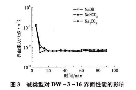 圖3堿類型對DW-3-16界面性能的影響