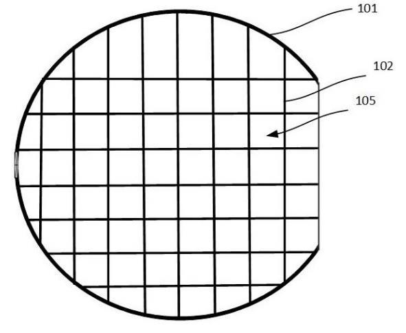 步驟2),依次對各組中的腐蝕區域105內的晶圓104表面進行腐蝕,直至完成整片晶圓104的腐蝕。