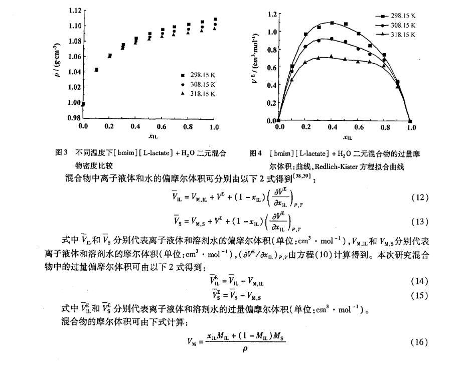 混合物中離子液體和水的偏摩爾體積可分別由以下2式得到: