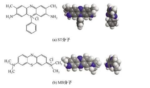 圖6 ST和MB染料分子結構圖及空間模型