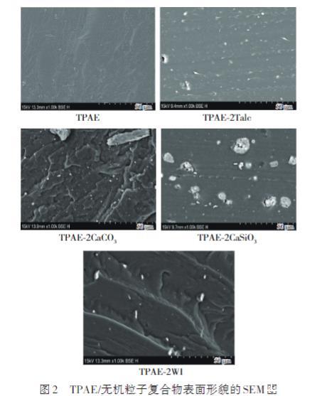 圖2 TPAE/無機(jī)粒子復(fù)合物表面形貌的SEM圖