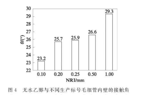圖4無(wú)水乙醇與不同生產(chǎn)標(biāo)號(hào)毛細(xì)管內(nèi)壁的接觸角