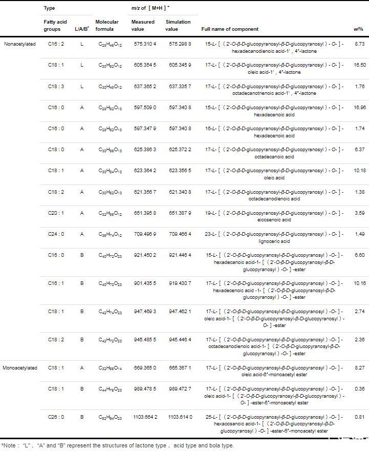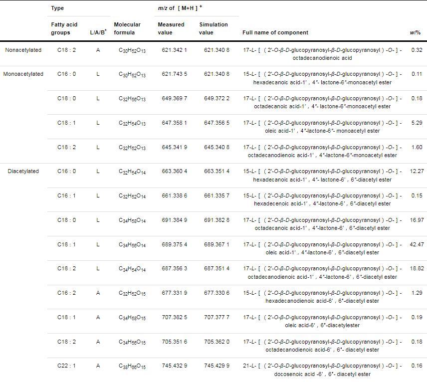 表1乙酰化SLs同系物組分和質量分數(Continued from previous page)