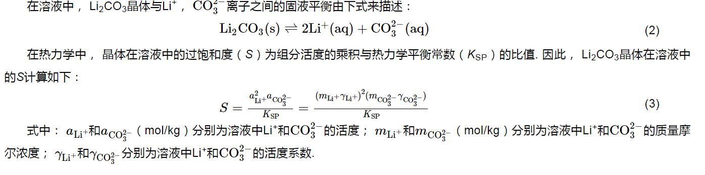 S=a2Li+aCO2?3KSP=(mLi+γLi+)2(mCO2?3γCO2?3)KSP(3)