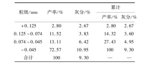 依據(jù)GB/T447—2008《煤炭篩分試驗(yàn)方法》對煤樣進(jìn)行小篩分試驗(yàn),浮選精煤樣品粒度組成見表2。由表2可以看出,煤樣中細(xì)粒物料含量非常高,其中-0.045 mm粒級產(chǎn)率高達(dá)72.57%,而+0.125 mm粒級產(chǎn)率僅有2.8%。該煤樣粒度細(xì),比表面積大,脫水時煤粒之間由于毛細(xì)作用存在大量毛細(xì)水,而且煤表面還存在大量的吸附水,難以通過機(jī)械力進(jìn)行有效脫除。此外,樣品中細(xì)粒含量高、粗粒含量少也會造成脫水過程中顆粒之間供水穿透的孔隙較少,脫水阻力較大。