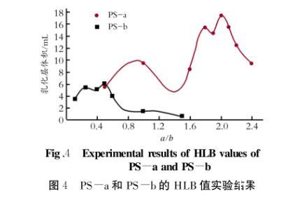圖4 PS-a和PS-b的HLB值實驗結(jié)果