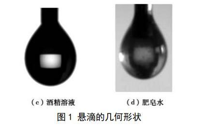 試驗為比較3種液體表面張力的大小,采用懸滴法對液體的表面張力進行測量,懸滴法的基本原理是:處于毛細管端液體懸滴的形狀與液體的表面張力有關,在重力作用下,毛細管端形成的球形液滴的形變,隨著液滴有效密度的增加而增加并隨著液滴界面張力的增加而減小。通過Young–Laplace方程可以推導得到懸滴法計算表面張力的基本方程: