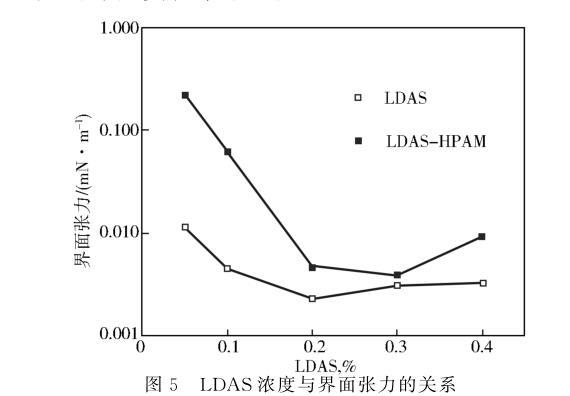 圖5 LDAS濃度與界面張力的關系