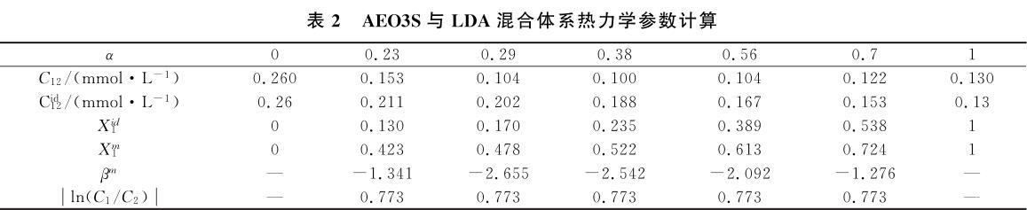 表2 AEO3S與LDA混合體系熱力學參數計算