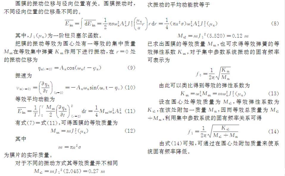 MAMs由一個或多個微小中心質(zhì)量塊粘結(jié)在薄膜上組成的二維周期性陣列結(jié)構(gòu)構(gòu)成。研究表明,衡量其隔聲降噪效果的傳遞損失(TL)與多種參數(shù)相關(guān),包括幾何尺寸、質(zhì)量塊分布、中心質(zhì)量塊質(zhì)量、薄膜厚度和薄膜預(yù)應(yīng)力(表面張力)等微結(jié)構(gòu)參數(shù)。現(xiàn)有研究對附加質(zhì)量塊非中心布置和多質(zhì)量塊布置的影響有所涉及,但仍缺乏實驗驗證。本文在現(xiàn)有成果基礎(chǔ)上,通過有限元仿真與實驗對比,研究由彈性薄膜和質(zhì)量塊構(gòu)成的MAMs的隔聲特性。