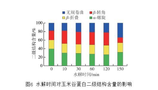 圖6水解時(shí)間對(duì)玉米谷蛋白二級(jí)結(jié)構(gòu)含量的影響