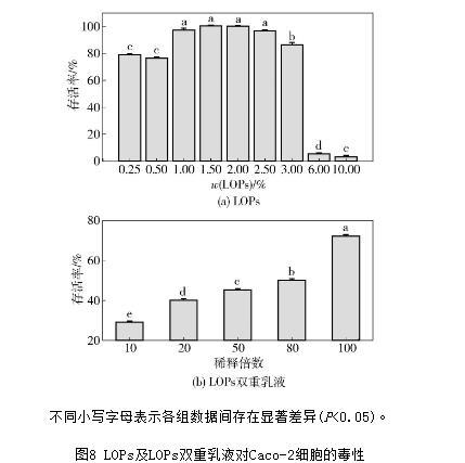 圖8 LOPs及LOPs雙重乳液對Caco-2細胞的毒性