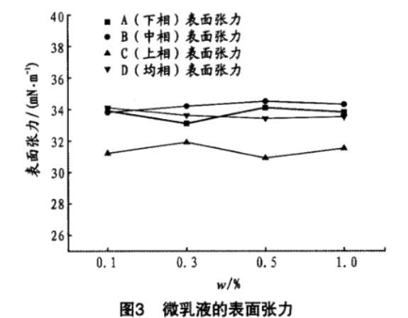 對上述微乳液進(jìn)行了表/界面張力的測試,結(jié)果見圖3。