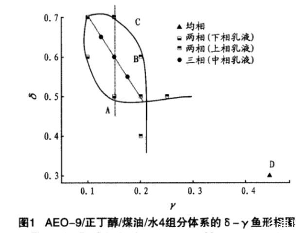采用魚形相圖對微乳液相行為進(jìn)行描述,具有直觀明了、簡單實用等特點。