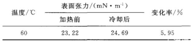 將助排劑AO-4放入烘箱,溫度設(shè)置為60℃,放置2 h后,冷卻至室溫,測試其表面張力,結(jié)果見表2。