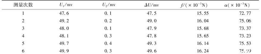 用原有的金屬吊環(huán)測量純水在25℃時的液體表面張力系數(shù)的數(shù)據(jù)見表2。