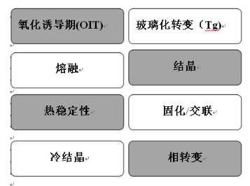 差示掃描量熱儀(DSC)將與材料轉變相關聯的溫度和熱流作為時間和溫度的函數進行確定。該儀器還提供物理轉變(由相變化、熔化、氧化以及其他與熱相關的變化引起)期間材料吸熱(熱量吸收)和放熱(熱量散發)過程的定量與定性數據。