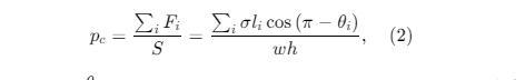 對(duì)于一個(gè)寬為w,高為h的矩形截面管道,毛細(xì)壓強(qiáng)Pc可以用下式計(jì)算: