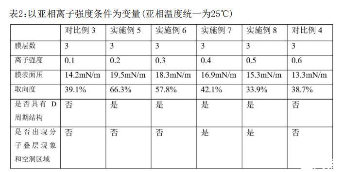 ?對(duì)比實(shí)驗(yàn):亞相溫度過高(>30°C)或離子強(qiáng)度過低(<0.2)會(huì)導(dǎo)致纖維排列混亂(對(duì)比例1–4),超純水亞相則無法形成D周期結(jié)構(gòu)(對(duì)比例5)。