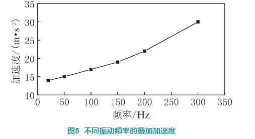 車輛在行駛中傳遞到油水分離器上的振動主要集中在10~340 Hz,沿X方向的主要振動頻率為20、45、100、200、300 Hz,沿Y方向的主要振動頻率為20、50、100、175、203、300 Hz,沿Z方向的主要振動頻率為20、100 Hz,加速度均大于8 m/s2,沿Y方向100 Hz的振動加速度最大約為39.2 m/s2。為了方便對試驗結(jié)果進行比較分析,最終選擇在頻率為20、50、100、150、200、300 Hz,加速度為39.2 m/s2的條件下進行試驗。