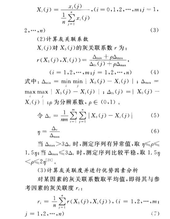 (3)計算灰關(guān)聯(lián)度并進(jìn)行優(yōu)勢因素分析 對某因素的灰關(guān)聯(lián)系數(shù)取平均值,即得其與參考因素的灰關(guān)聯(lián)度: