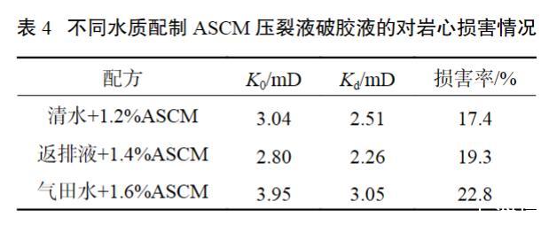表4不同水質(zhì)配制ASCM壓裂液破膠液的對(duì)巖心損害情況
