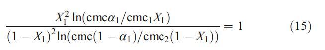 這些結(jié)果已通過使用規(guī)則溶液理論得到進(jìn)一步證實(shí),該理論不僅表征了混合膠束中的相互作用參數(shù)bmic 12,而且還解釋了與理想的偏差[32]。X1是膠束中DPS的摩爾分?jǐn)?shù),可根據(jù)以下方程式迭代計算: