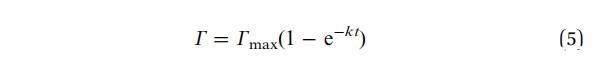當(dāng)系統(tǒng)接近飽和時(shí),G(t)的下降速度必須隨著表面變得擁擠而減慢。吸附質(zhì)濃度剛好低于表面,然后與吸附物種失去平衡,動(dòng)力學(xué)受到吸附屏障的限制。一級(jí)動(dòng)力學(xué)過(guò)程會(huì)導(dǎo)致: