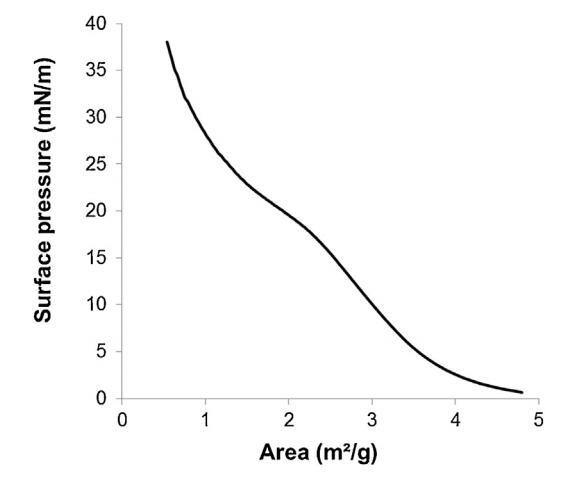 通過(guò)傳播精漿在空氣/緩沖液界面形成的單層的表面壓力面積(?–A)等溫線(n=3,標(biāo)準(zhǔn)偏差在0-18.9 mN/m范圍內(nèi)不超過(guò)1.5 mN/m,在18.9-38 mN/m范圍內(nèi)不超過(guò)1.2 mN/m)。