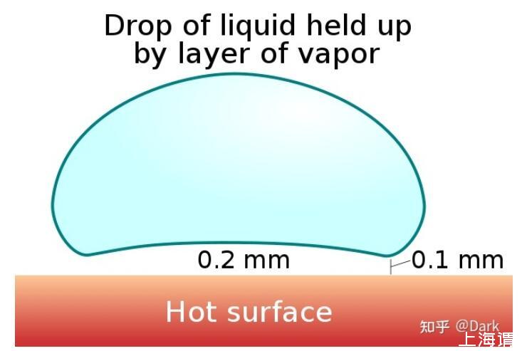 在萊頓弗羅斯特現象下,水珠中跟鐵板接觸的部分會迅速沸騰形成水蒸氣,與此同時水珠尚保持液體的狀態,由于水蒸氣的傳熱比液體水慢得多,蒸氣層阻隔水直接接觸滾燙鐵板并大大降低水滴沸騰的速度。