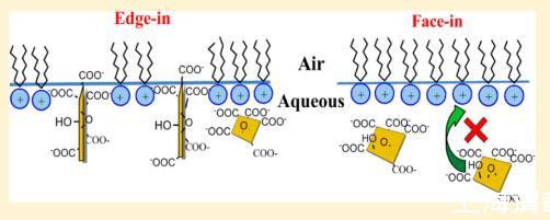 氧化石墨烯在生物醫(yī)學領域有著廣泛的應用前景。但關于GO如何與細胞膜或模型系統(tǒng)相互作用的信息仍然非常有限。當GO與脂質(zhì)相互作用時,它是如何定位自身的還不清楚。在本研究中,朗繆爾單層技術應用于空氣中?研究GO和脂質(zhì)模型之間相互作用的性質(zhì)和方向的水/水界面。故意選擇具有相同18碳烷基鏈但不同電荷頭基的五種脂質(zhì)(DODAB、DSEPC、DSPC、DSPA和SA),以合理化可能的相互作用。實驗結(jié)果表明,這種相互作用是由極性頭群和GO之間的靜電相互作用決定的。GO可以并入帶正電的脂質(zhì)DODAB和DSEPC的單層,但不能并入帶中性或帶負電的脂質(zhì)(DSPC、DSPA和SA)。將GO注入荷正電脂質(zhì)DODAB和DSEPC單層下方的亞相時,觀察到不同的表面壓力行為。提出了一個“邊入”而不是“面入”的取向模型來解釋GO在DODAB單分子膜上的吸附。