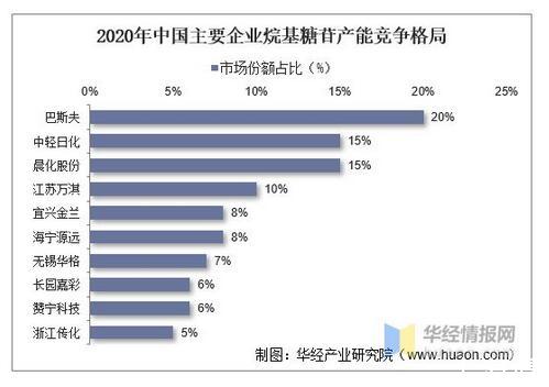 根據相關數據統計,2020年,國內現有烷基糖苷企業產能共20萬噸,產量僅12.4萬噸,產能利用率只有62%,行業產能過剩逐步凸顯。