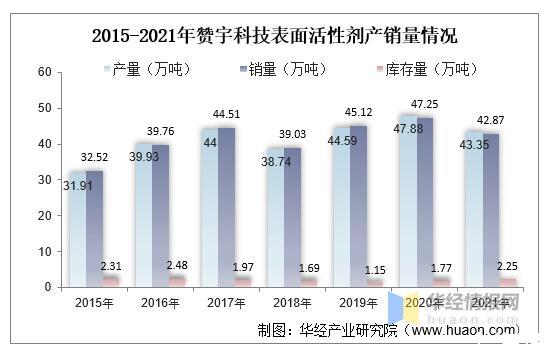 2015-2021年贊宇科技表面活性劑產(chǎn)銷(xiāo)量情況