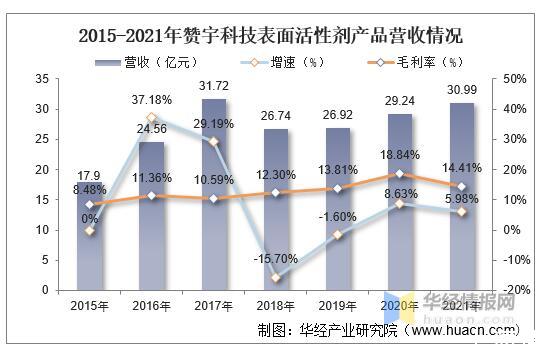 2015-2021年贊宇科技表面活性劑產(chǎn)品營(yíng)收情況