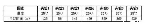 通過實驗1我們發(fā)現:在浸泡清洗中各組分均能達到較好的清潔效果,但各組分最終清潔時間有差異,具體數據如下表