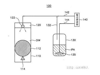 參照圖3,在所述引擎蓋的底面上形成了用于破斷移至所述殼體上部的晶片的系合槽。所述系合槽用于使已完成干燥工藝的晶片與所述殼體分離;該小定位置形成了一個噴射孔,該噴射孔將從上述散裂器噴射的異丙基醇蒸氣引導到上述殼體內。