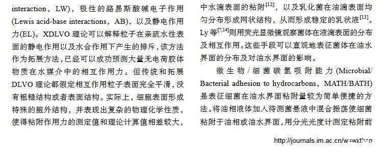 細菌在油水界面粘附的理論、特性及應(yīng)用