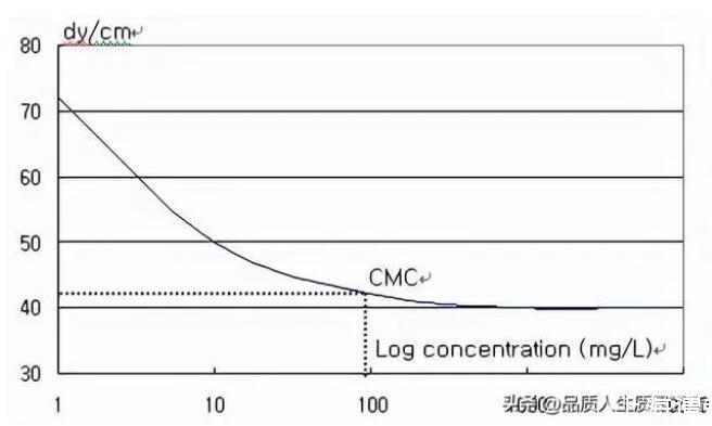 而電鍍液的潤(rùn)濕性是可由液體的表面張力來做控制及分析,由表面張力的理論得知,若電鍍液的表面張力愈小,表示電鍍液的內(nèi)聚力愈小、愈容易滲入細(xì)小的縫隙裡面、也愈容易於被鍍物表面潤(rùn)濕讓金屬離子鍍上去。因此為了使電鍍液的表面張力降低或是增加電鍍後的品質(zhì),通常於電鍍液中會(huì)加入有機(jī)添加劑(光澤劑,結(jié)構(gòu)改良劑,潤(rùn)濕劑..等),其中潤(rùn)濕劑即是在使鍍液表面張力降低的作用。然而當(dāng)這類界面活性劑添加超過CMC點(diǎn)後,表面張力即不再改變(如下圖)。此時(shí)過量的添加不但沒達(dá)到效果反而增加了生產(chǎn)成本。因此CMC點(diǎn)便可作為電鍍液的監(jiān)控標(biāo)準(zhǔn)值,來決定何時(shí)添加及添加的量。