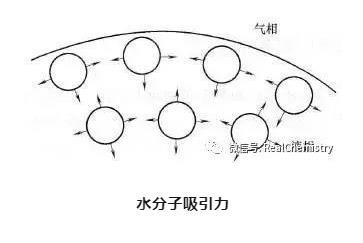 表面張力是液體的基本物理屬性,來自液體最外層的分子。以水為例,水分子以范德華力和氫鍵作用相互吸引,內部單個水分子受其他水分子引力表現為力平衡,最表面的那一層水分子不同,以這一層水分子為界一邊是水的吸引一邊是空氣幾乎不對水用力,這一層水分子之間有橫向的相互吸引使得它們成為一層“水膜”,水膜之間的吸引力就是表面張力。