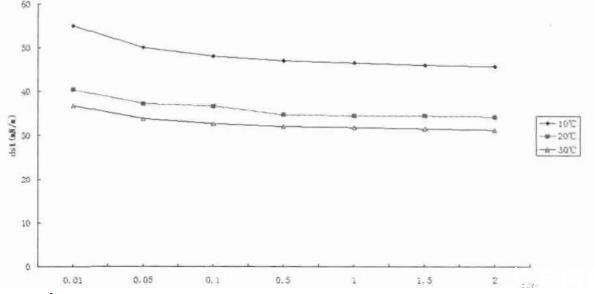 圖3質(zhì)量分?jǐn)?shù)濃度為0.1%的OP-10在不同溫度下dst變化曲線